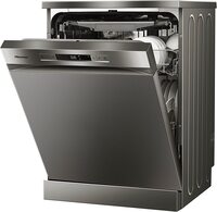 The Hisense Dishwasher HS622E90G is a premium appliance designed to enhance your kitchen's functionality and aesthetics. This free-standing dishwasher boasts a sleek, modern design with a stunning silver finish that complements any kitchen decor. It is not only visually appealing but also highly efficient, featuring a 13-place setting capacity, ensuring it can cater to the needs of a medium to large household.