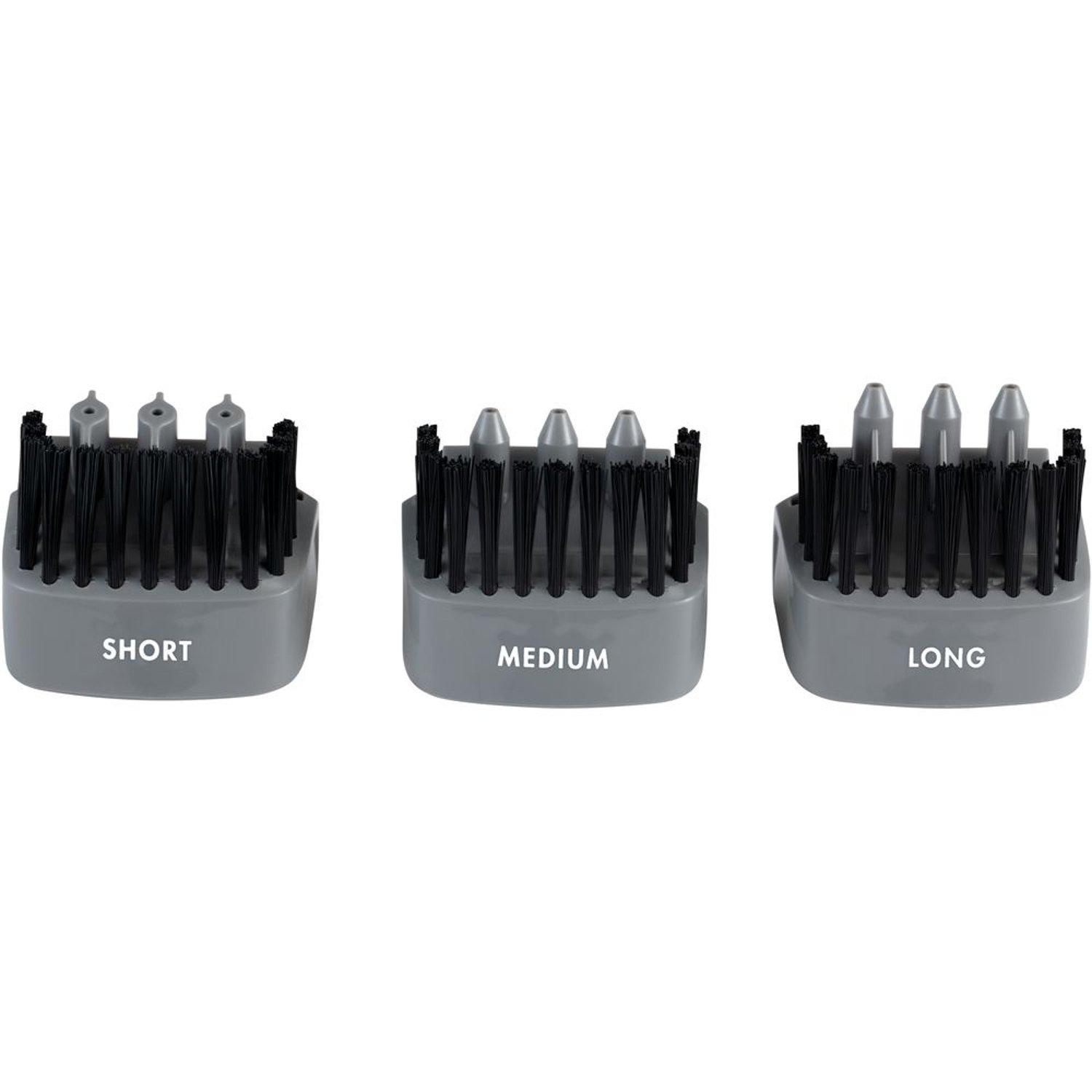 Three Customizable grooming clips (based on fur type) brush your dog's coat while cleaning.