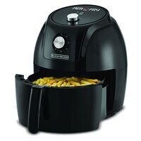 The Black+Decker Aerofry AF575-B5 is a large-capacity air fryer designed to help you prepare healthier meals for your family. With a 5.6-liter capacity and an 1800W motor, this air fryer ensures quick and efficient cooking. Its sleek black design adds a modern touch to your kitchen, while the mechanical control panel allows for easy operation.
