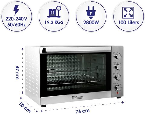 Super General 100 Liter Stainless Steel Electric Oven, Rotisserie-Grill, Convection-Oven, Thermostat, Timer, SGEO-101-TRC, Black/Silver, 76 X 50 X 47 cm, 1 Year Warranty