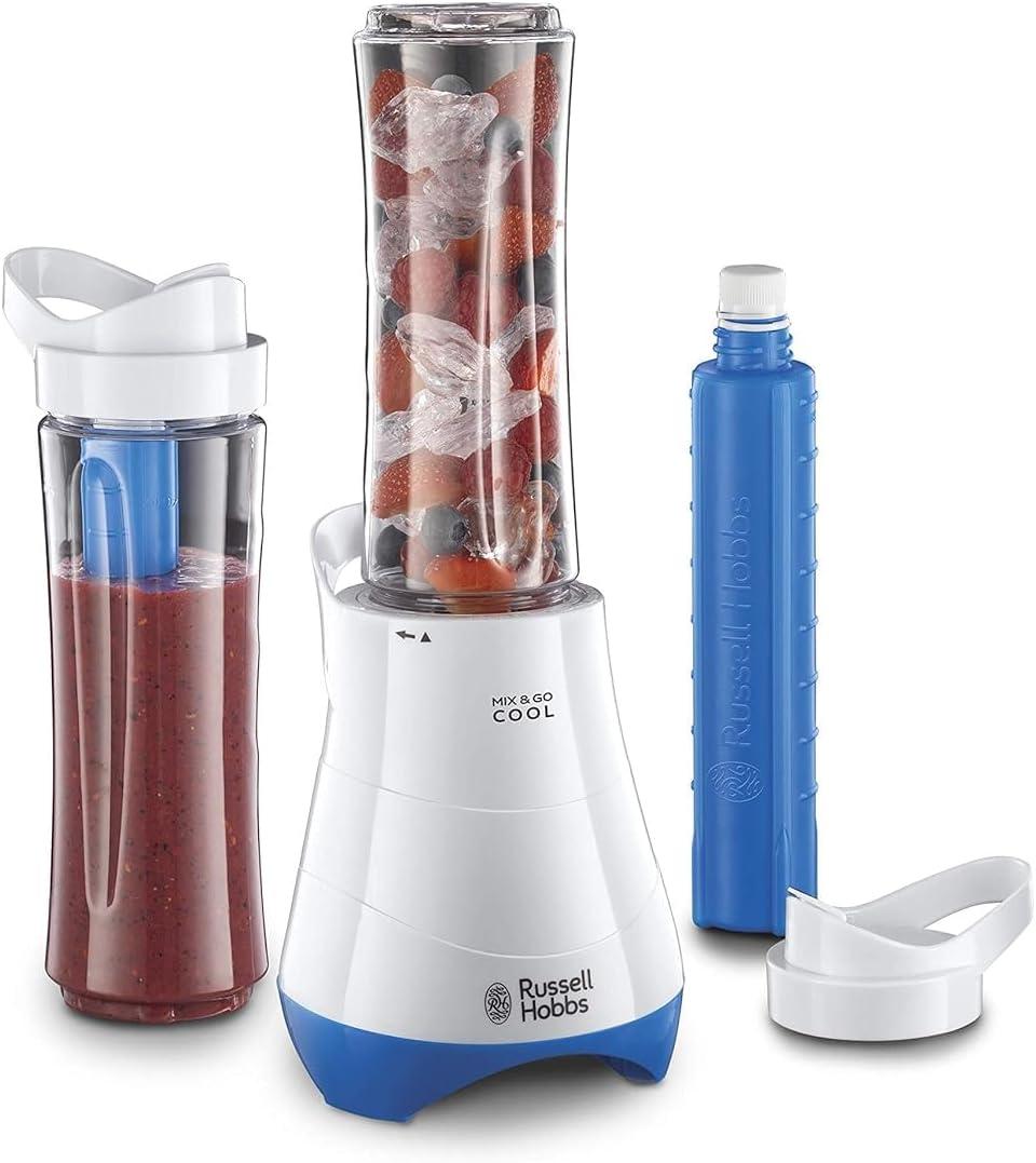 The Russell Hobbs Mix And Go Cool Smoothie Maker 21351 features a 300W motor and a 0.6L capacity for quick and easy smoothies.