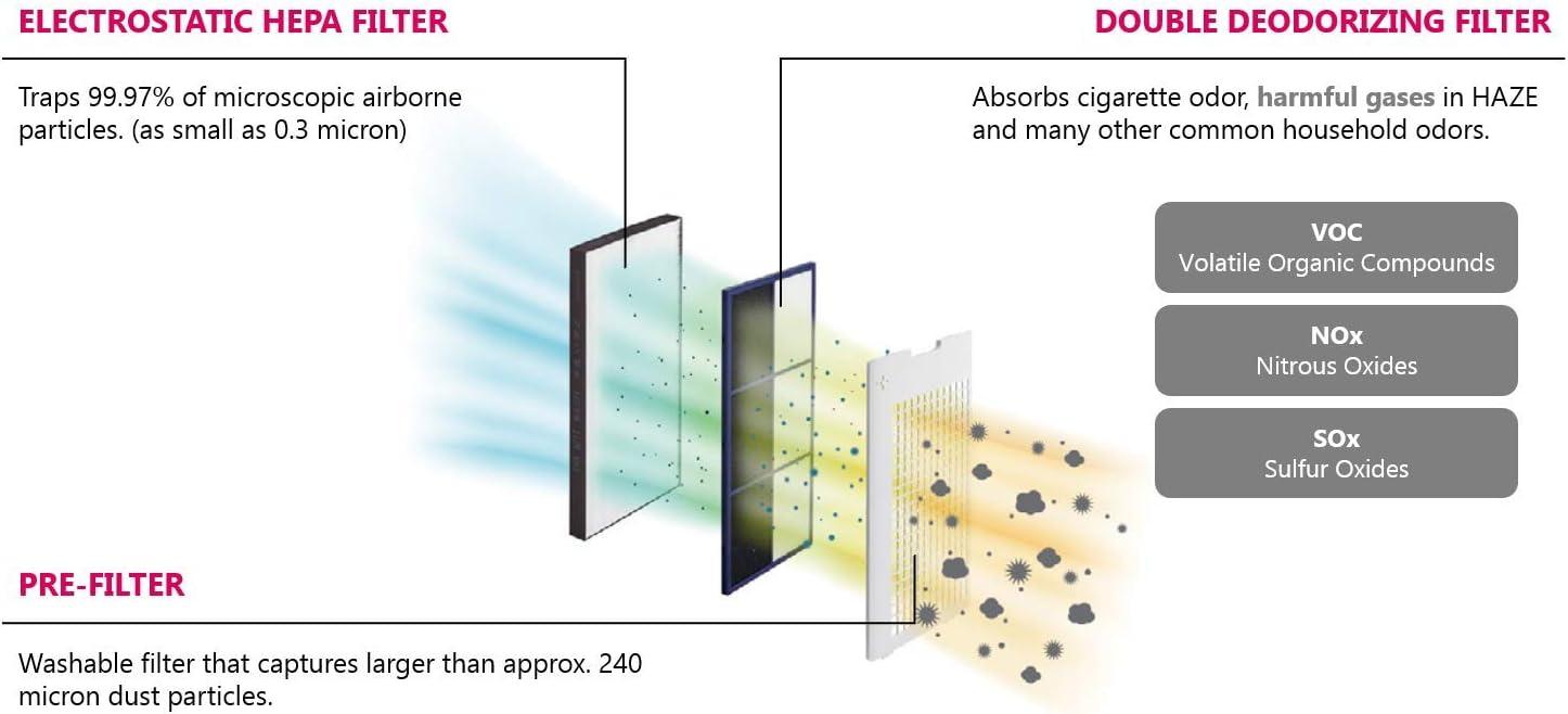 Equipped with advanced filtration systems, including HEPA and carbon filters, this unit removes dust, allergens, and odors from the air.