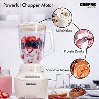 Geepas Gsb5409 250W 2 In 1 Multifunctional Blender | Stainless Steel Blades, 4 Speed Control With Pulse | 1.5L Jar, Over Heat Protection| Ice Crusher, Chopper, Coffee Grinder & Smoothie Maker