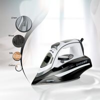 Geepas Ceramic Steam Iron, Temperature Control, Gsi24025 Ceramic Sole Plate, Wet And Dry Self Cleaning Function Powerful Steam Burst 400ML Water Tank 2 Years Warranty, Brown, 3000W