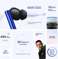 The Buds Air 3 Neo True Wireless Earphones in Starry Blue provide high-quality sound in a sleek, modern design. With Bluetooth connectivity and intuitive touch controls, these earbuds offer a hassle-free listening experience for on-the-go music lovers.