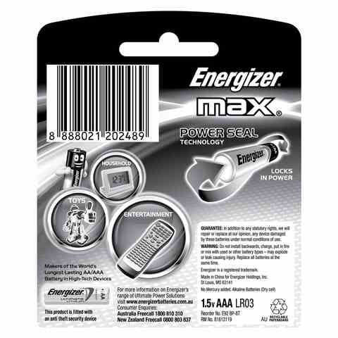 Energizer Max Alkaline AAA Batteries - Pack Of 8